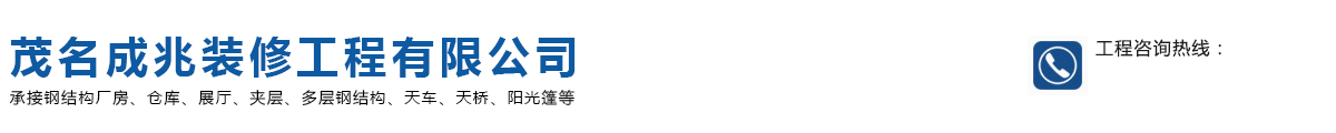 茂名成兆裝修工程有限公司具有鋼結構制造和鋼結構安裝的專業(yè)公司。從事鋼結構工程的設計、制造、安裝施 工及鋼結構材料的銷售。主要承接鋼結構廠房、倉庫、展廳、夾層、多層鋼結構、天車、天橋、陽光篷等鋼結 構工程;配套土建、水電安裝、廠房改造、維修等工程項目。